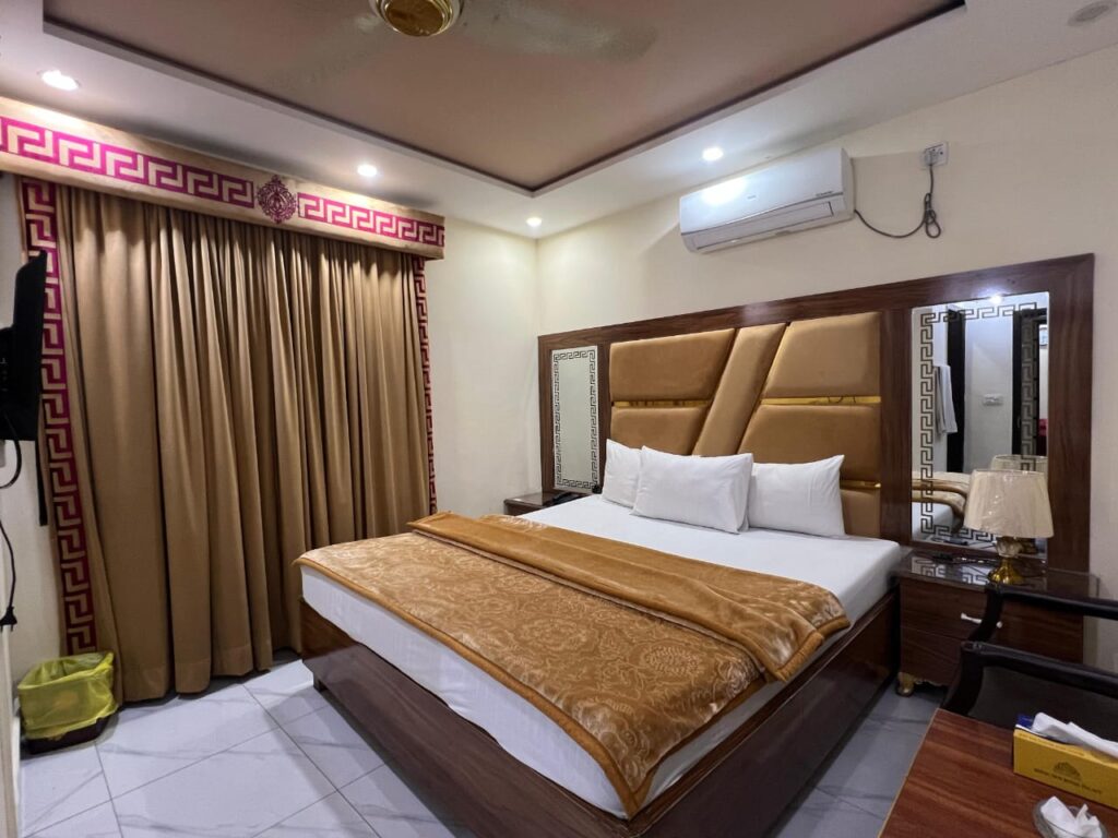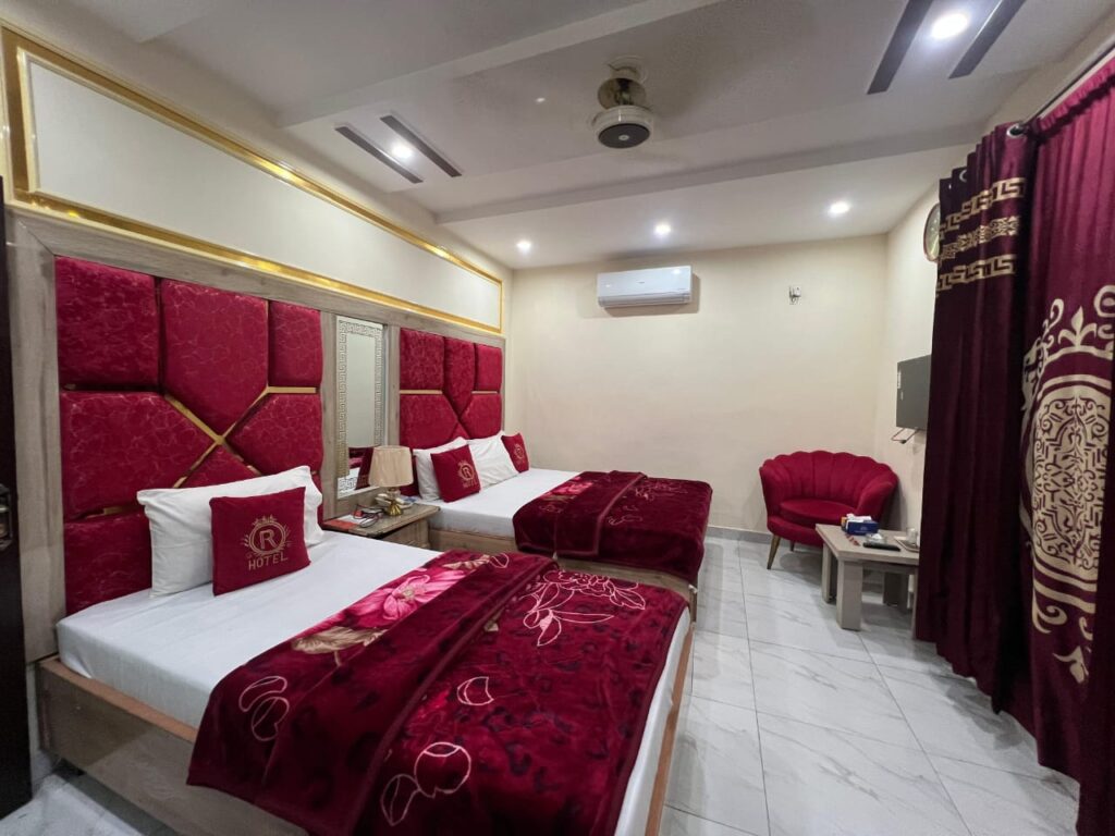 Hotel New Royal Palace Lahore is a well-maintained and comfortable hotel located in Johar Town, Lahore. Featured on Hotels in Lahore, the hotel offers spacious, air-conditioned rooms suitable for families, business travelers, and tourists. Each room is equipped with a private bathroom, comfortable bedding, a seating area, a work desk, and clean interiors that ensure a relaxing and pleasant stay.